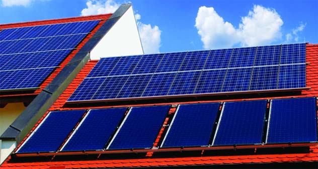 Kombinovaný systém solárních kolektorů a fotovoltaických panelů.